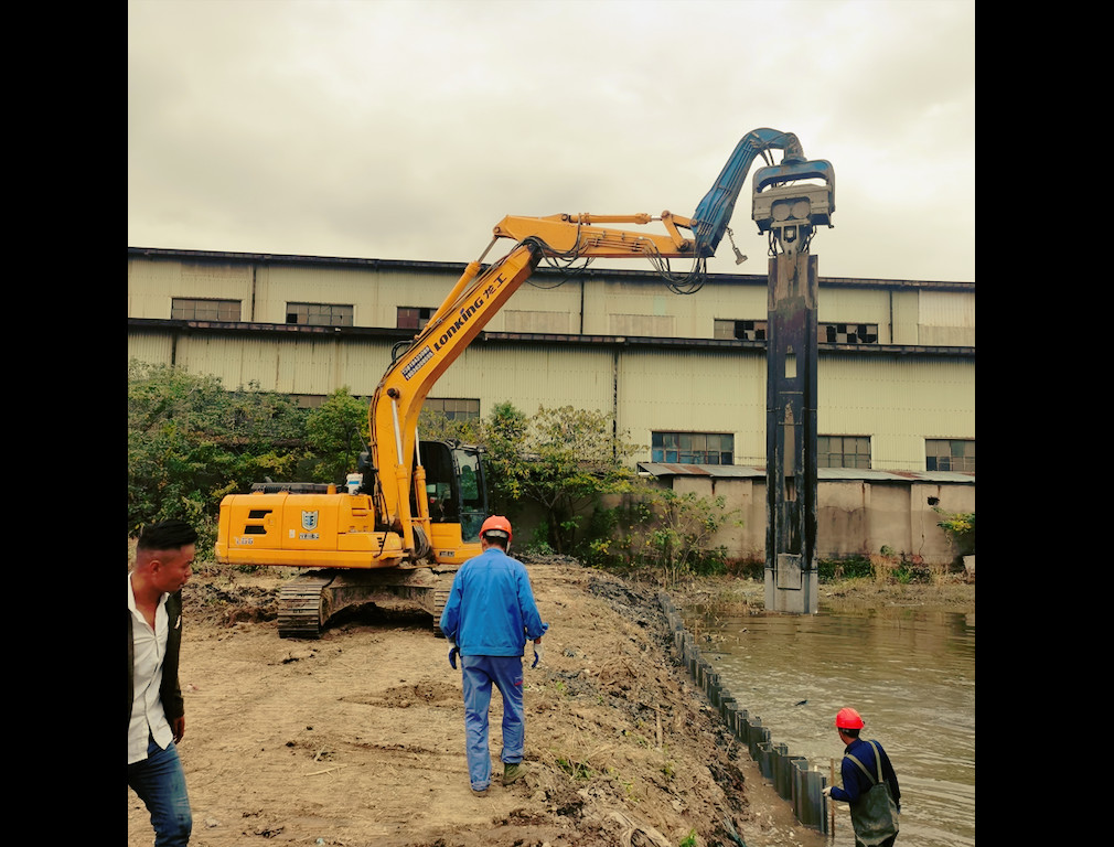 درایور شمع VIBRA را می توان برای کارهای شمع بندی چند منظوره از جمله راندن شمع ورق پلاستیکی استفاده کرد.دارای چندین نوع شمعکاری از جمله خاکریزی مسیر آب، پی خانه، شبکه شهری، پل و سایر زمینههای ساختمانی است.FV-250 یکی از شمع گیرهای محبوب در صنعت با ظرفیت شمع دهی 10 متری مناسب برای بیل مکانیکی نوع متوسط از 20 تا 30 تن است.کارکرد آسان و قابل اعتماد، به اندازه کافی قادر به راندن ورق سیمان، ورق فولادی، لوله فولادی، فولاد H، چوبی و غیره است. شمع گیر VIBRA FV250 مجهز به بیل مکانیکی Lonking برای راندن شمع های پلاستیکی 9 متری در نزدیکی کانال، مشتری از داشتن FV250 راضی است نیازهای او را برآورده می کند و در عین حال سود بیشتری را تضمین می کند!
